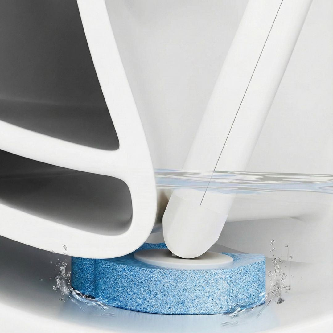 Click once to grab the sponge. Clean the toilet. Click again and the sponge drops straight into the trash. No touching. No mess.